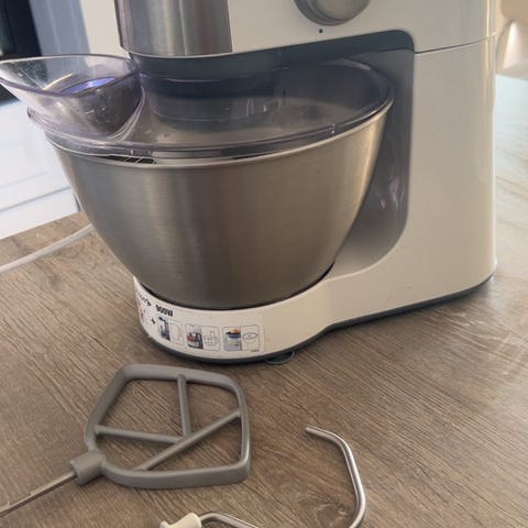 Hel og pen maskin med bolle og sprutdeksel. Mangler redskap.