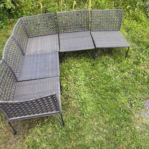 Utemøbelsett i grå flett med hjørnesofa og bord
