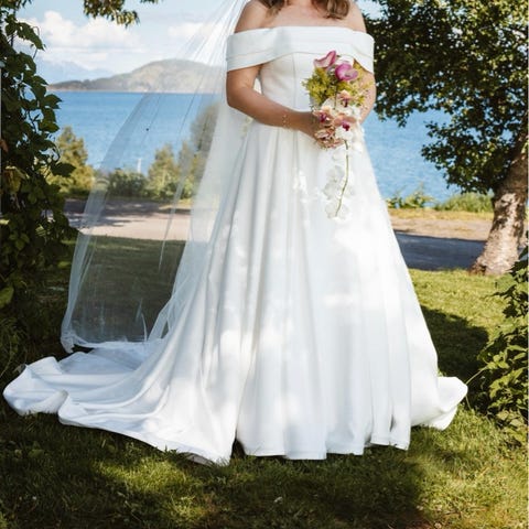 Brudekjole fra Justin Aleksander kjøpt hos Brudehuset i Tromsø sommeren 2025.