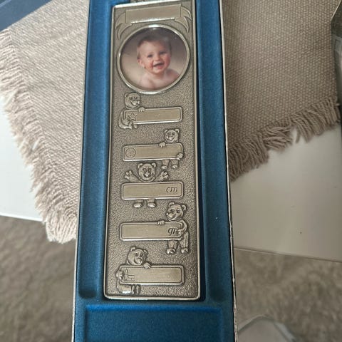 Nydelig fotoramme i rosa kunstskinn med bamsemotiv.