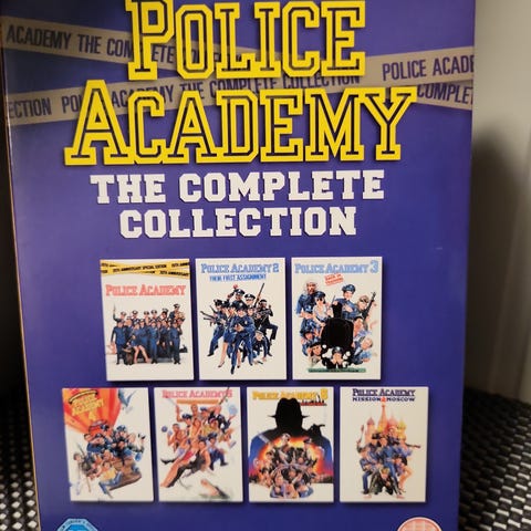 Warner Bros Police Academy DVD Box Set. Inneholder flere filmer fra Police Academy-serien. DVD-format, engelsk språk. Passer for samlere og de som ønsker å se filmserien.