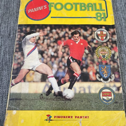 Komplett Panini Football 82 samlealbum. Alle spillerne i toppdivisjonen i England og Skottland, samt lagbilder fra de andre divisjonene. Skrevet på forsiden og limt på kort av Trevor Brooking.