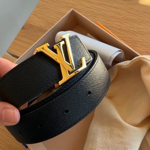 Loewe herrebelte laget av svart lær. Beltet har en dekorativ spenne med rødt, hvitt og gult mønster. Passer til herrebruk.