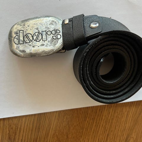 The Doors belte for unisex i svart farge laget av lær. Beltet har en spenne med The Doors-logoen. Passer til både menn og kvinner.