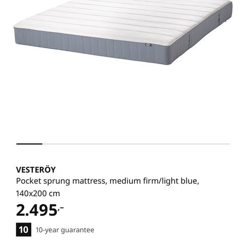 IKEA dobbel madrass og sengeramme med målene 140x200. På IKEA sin nettside heter madrassen HÖVÅG.