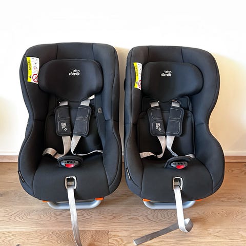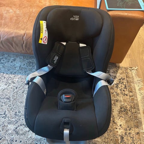 Noen flekker på beltet og forankringsseler, se bilde. Regner med det er fra tøy/hender etter lek, da de ikke spiser i bilen.