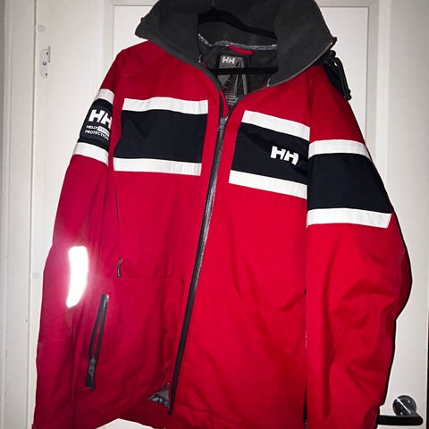 Henri Lloyd seildress i rød farge, laget av nylon. Dressen består av jakke og bukse, designet for dame. Produktet er laget i England og har refleksdetaljer for økt synlighet, og metallhemper i jakken som gjør at man kan stroppe seg fast.