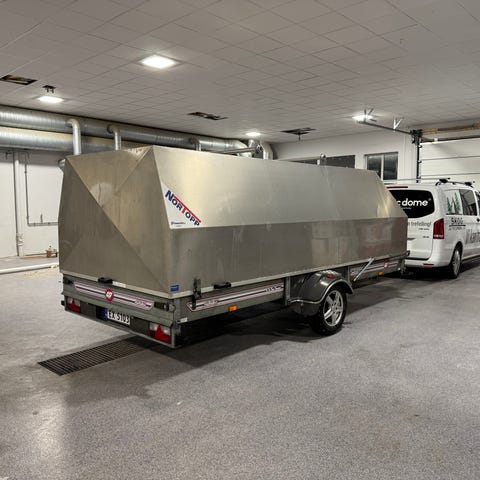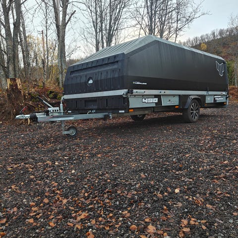 Montert innvendig belysning og ski glides til snøskuter. Er også montert ryggelys