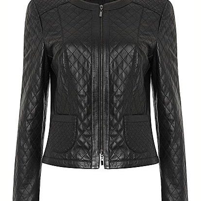 Quilted sort skinnjakke i nydelig tykt skinn med sølv kjetting detaljer.