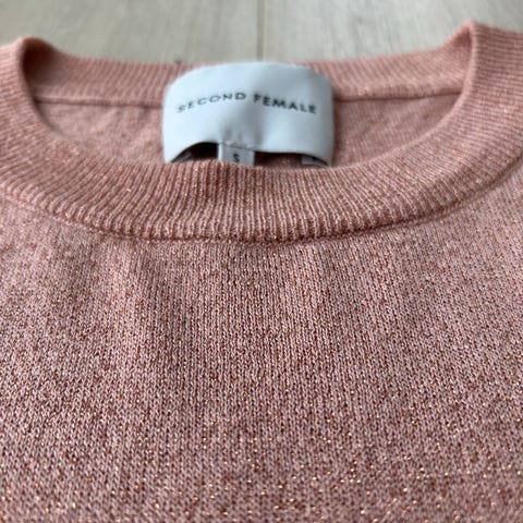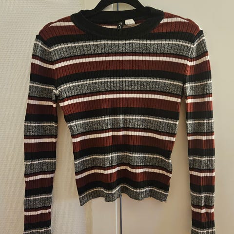 Second Female Stripes Genser i størrelse XS med flerfarget stripemønster. Genseren har ribbestrikket tekstur og er laget av et materiale som inneholder glittereffekt.