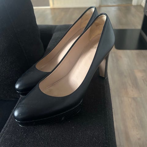 Lekre Michael Kors damesko i svart skinn med høye hæler med gulldetaljer på hælen. Stilige til fest. Størrelse 37 1/2. I svært god stand - kun brukt 2 ganger