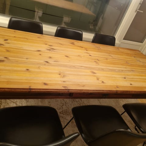 Nydelig og meget stødig spisebord kjøpt på Bolia for ca.11 år siden. Bruksmerker av liten betydning. Bør oljes og pusses lett eb gang pr år.