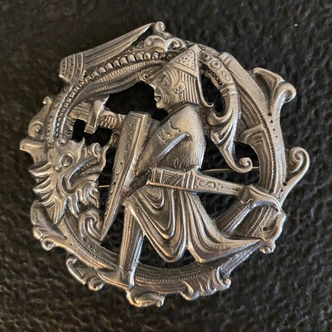 6.2 cm stor brosje i sølv. Er superfin og i orden. Se bilder for sølvstempler. Kan sendes. Selges til 800 kroner.