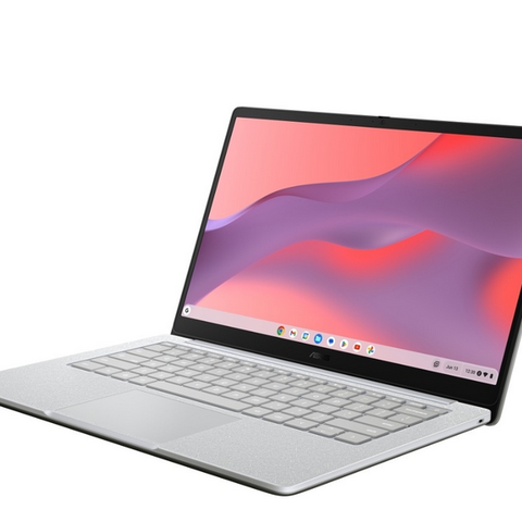 Asus Chromebook 2-i-1 15,6" bærbar PC med hvit chassis, utstyrt med Intel Core i3-prosessor. Enheten har en berøringsskjerm som kan vippes 360 grader for bruk som nettbrett eller tradisjonell laptop. Tilkoblingsmuligheter inkluderer HDMI. Passer for brukere som trenger en kombinasjon av bærbarhet og fleksibilitet.