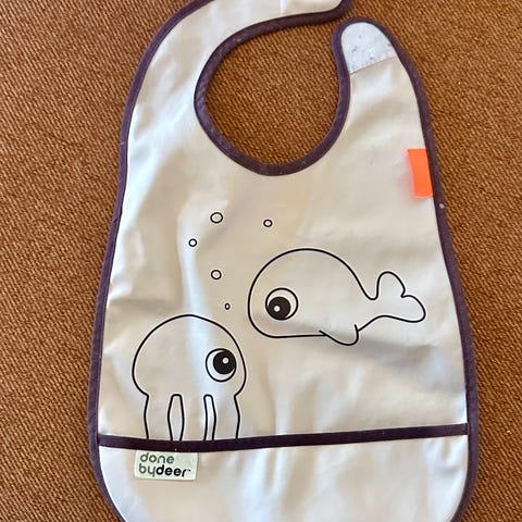 Praktisk silikonsmekke for barn, enkel å rengjøre, justerbar og komfortabel. Perfekt for å redusere søl under måltider.