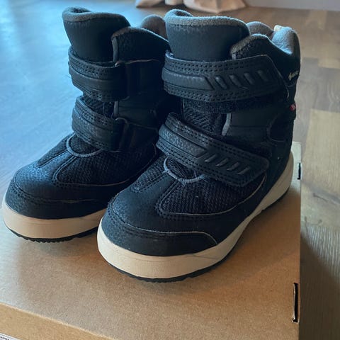 barn vintersko i størrelse 25, designet for gutter. Skoene er blå med tekstil- og syntetisk materiale, og har en varm fôr for kalde forhold. De er vanntette med Dry-Tech teknologi, egnet for bruk i vått og kaldt vær.