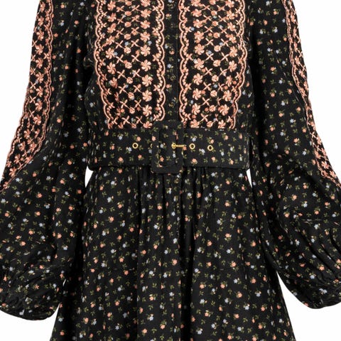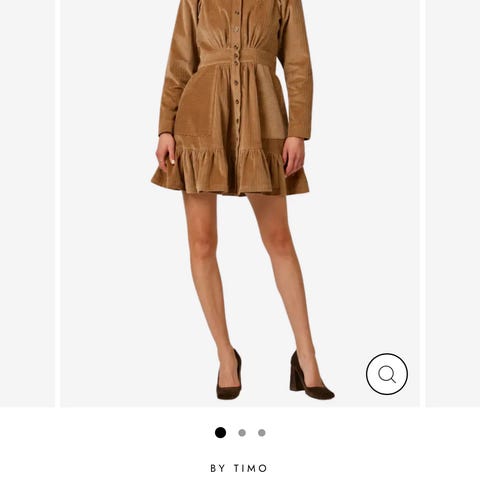 byTiMo babycord kjole i brun farge, størrelse L selges. Kun brukt noen få ganger. Kjolen har et nydelig blomstermønster. Kan brukes både til hverdag og fest. En søm er forsterket i ryggen (se bilde). Dette synes ikke på utsiden av kjolen.