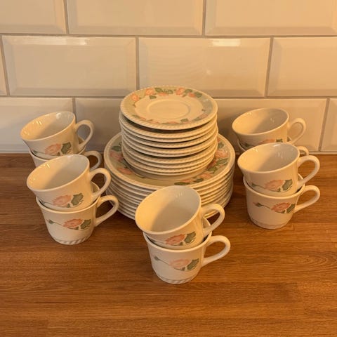 8 vintage asjetter "Kalinka", fra franske Arcopal. Asjettene