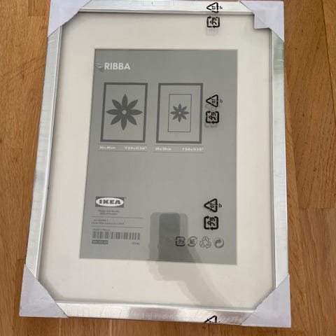 Sort Ribba ramme fra IKEA med passepartout. Ubrukt og i original innpakking . Har støtteklaff bak.