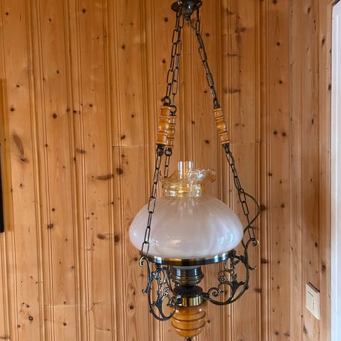 Selger en lite brukt taklampe i smijern, som kan lyse fint opp i kjellerstua eller på hytta!