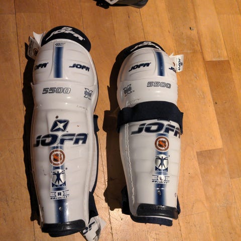 Bauer Ishockey Leggbeskyttere i fargene hvit og rød. Designet for ishockey med justerbare stropper for sikker passform. Beskytter leggene under ishockeyspill.