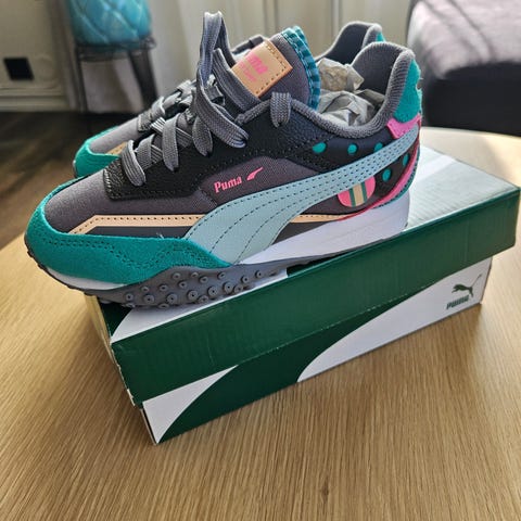 Selger Pokemon sko til barn fra Puma i størrelse 33. Skoen er veldig lite brukt og selges nå da de har blitt for små. Se bilder.