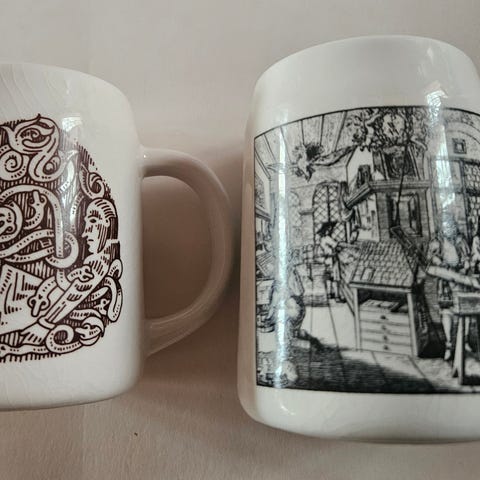 To monogramkrus / tekopper fra Covent Garden med vakkert monogram. Hele, pene, nær som nye. H 8,5 cm, dia 8,5 cm. Pris kr 100,- pr stk