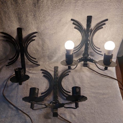 Lampe som festes i sengekant eller lignende. Det er en pære i men usikker på hvor lenge siden det er siden den ble byttet.