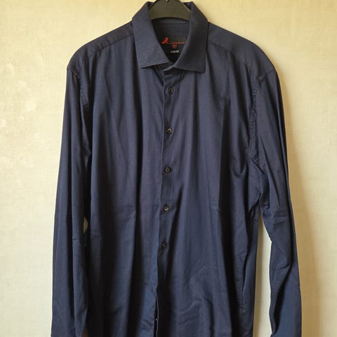 Dressmann skjorte i størrelse 8XL for menn, svart med røde detaljer. Skjorten er laget av en blanding av 97% bomull og 3% elastan, noe som gir god komfort og bevegelsesfrihet.