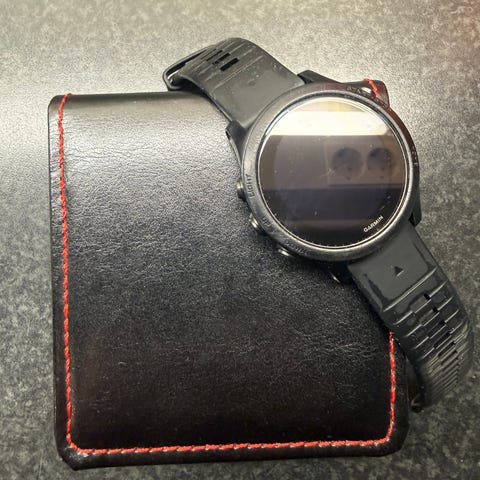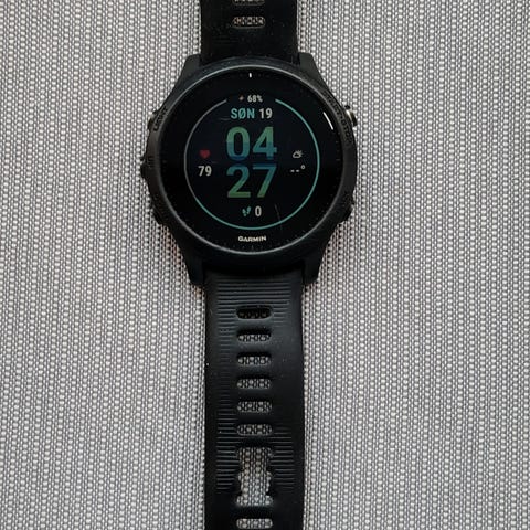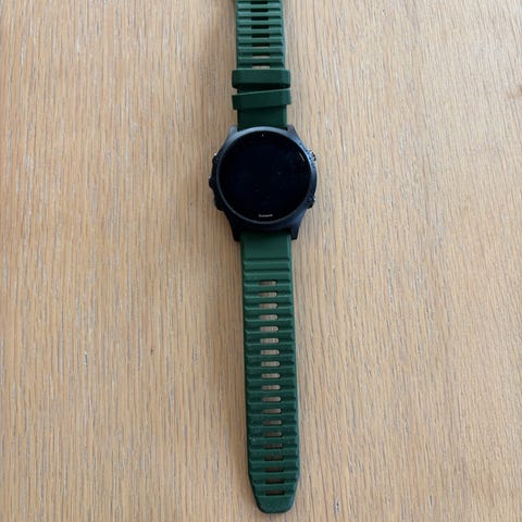 Garmin Forerunner 945 pulsklokke. Hvis du ser på denne annonsen nå så vet du hva du ser etter. Alt fungerer som det skal og lader følger selvfølgelig med. Når det kommer til det visuelle så ser den nesten ubrukt ut bortsett fra 1,5 ripe på plastikken rundt skjermen. Blir dessverre brukt for lite, så da fortjener den noen andre.