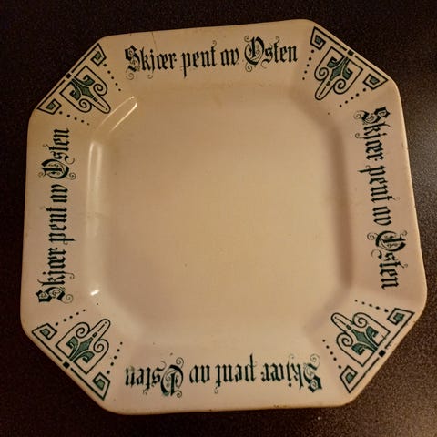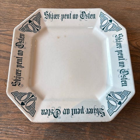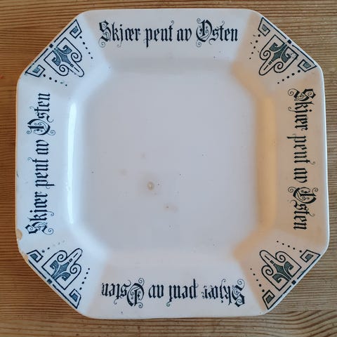 Sjeldent Egersund fat – «Skjær pent av Osten» (antikvitet)