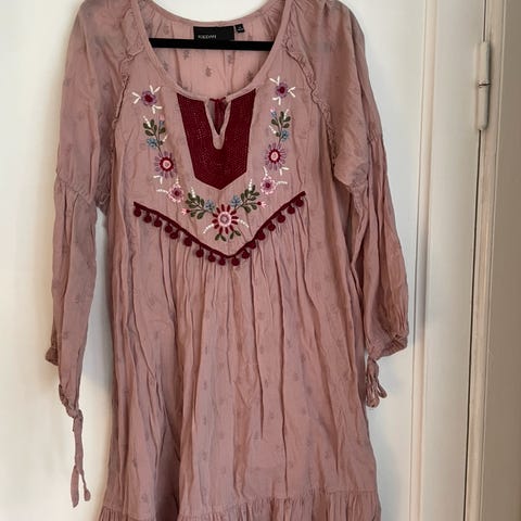 En myk hverdags kjole med hette, brun velour. Merke B.young str. M.