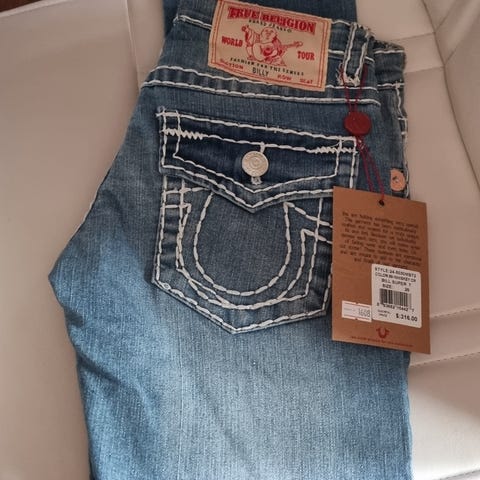 Nye True Religion Bobbi Baggy med taggene på. Taggen sier nypris var $139. (1400,-)
