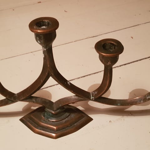 Metall, med patina. Litt ujevne mål på høyde, se bilder.