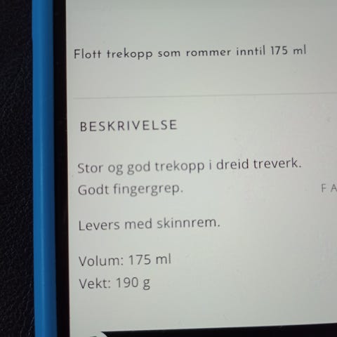 En offwhite 250 ml kopp fra Nordisk outdoor selges. Vi fikk den som gave og den har aldri vært brukt fordi vi har så mye hytte og frilufts utstyr. Kan hentes/overleveres i Oslo, Bergen, Trondheim, Bodø, Hemsedal og Tønsberg, samt strekningen Oslo-Hemsedal og Oslo-Tønsberg. Gi evt bud. Kan sendes.