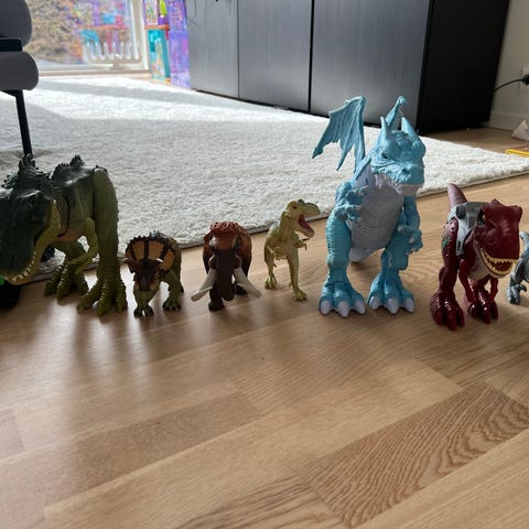 Min sønn selger litt av dino samlingen som. fjernstyrte med lyd, 150kr for alle 4.