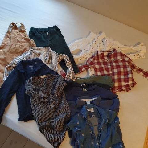 Stor pose med babyklær fra 0–1 år selges samlet. Alt fra babyteppe, bukser, gensere, bodyer og jakker til vinterbukser, sko og masse merkeklær. Både hverdagsklær og yttertøy i god stand. Perfekt startpakke til baby!