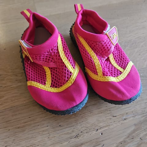 Pent brukte badesko.