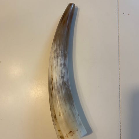 Flott eldre horn ,med flotte utskjæringer ol.fin stand.Har arvet dette så er usikker på opprinnelsen ,alder,fra hvor ol.Men flott horn og pynt-bud