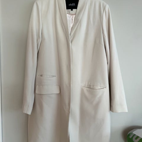 Fransa damejakke i størrelse L, farge hvit. Jakken er ubrukt, kun prøvd. Stor i størrelsen. Kjøpt på B.young