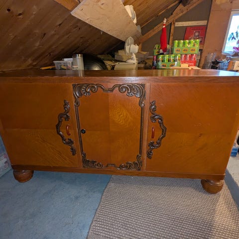 En fin hylle, brukt, den er modern men laget som gammelt.