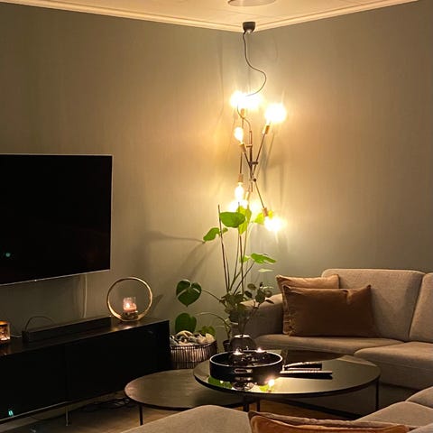 Organisk taklampe i pappmasje. Pent brukt i spisestuen vår. Kjøpt i 2021. Lyspære følger ikke med.