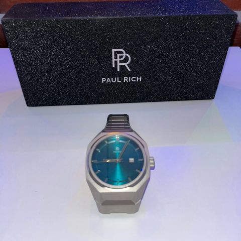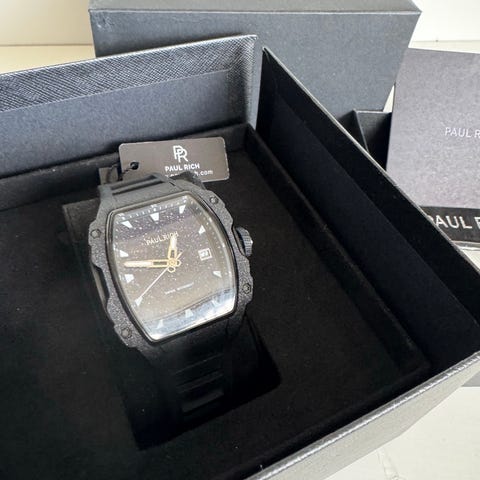 kjøpte for litt over 1 år siden og har blitt liggende. Utrolig stilig klokke, kun prøvd på armen, men den ble for stor/tung etter min smak