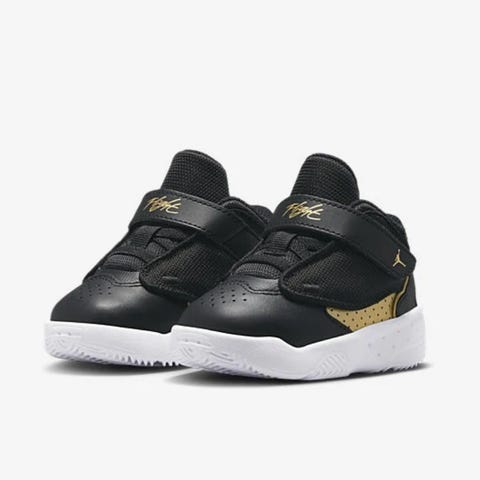 Nike TN barnesko i størrelse 21, egnet for unisex barn. Skoene har en svart overdel med blå og hvite detaljer. Sålen er hvit med oransje innslag, designet for godt grep og komfort.
