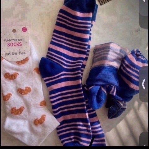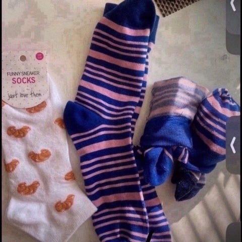 Størrelsen på sokkene kan sees på bildene, har 2 stykk av de blå sokkene.