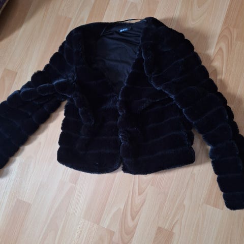 Flott Jakke i fuskepelsmønster. Kort modell, bolero type