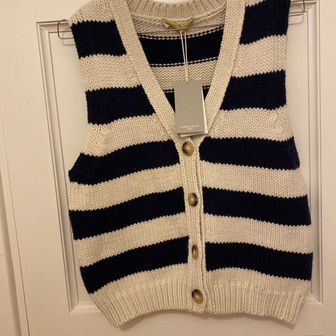 Vanessa Bruno genser/ vest mørk blå, vid fasong. Pent brukt, uten nupper.