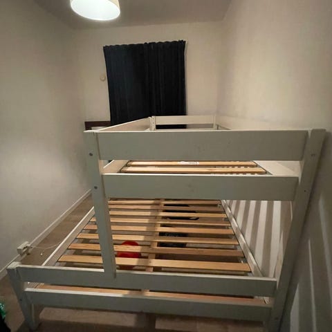 Selger køyeseng med skrivebord, hyller og utrrekkbar sovesofa under. Robust seng med mye bruk igjen, men madrass til sovesofa mangler. Kan enkelt lage en ny madrass så er sengen hel. Kjøpt på Finn til 3500,- for 1,5 år siden. Selges rimelig til 800,-. Sengen er demontert og kan hentes på Fjellstrand.