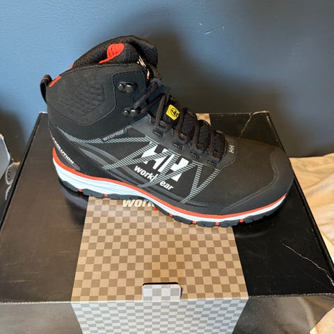 Helly Hansen Chelsea Evolution Low Andre sko i størrelse 39. Skoene er svarte med oransje detaljer og har et slitesterkt design. Egnet for arbeid og utendørs bruk.