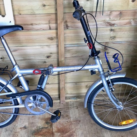 Aktive, sammenleggbar sykkel selges. Har hatt den i cabincruiseren så littegran overflate rust enkelte steder. Fin å ha på camping, eller i båten, tar veldig liten plass når sammenlagt. Har ikke vært brukt på flere år, så jeg har ikke bruk for den lenger.